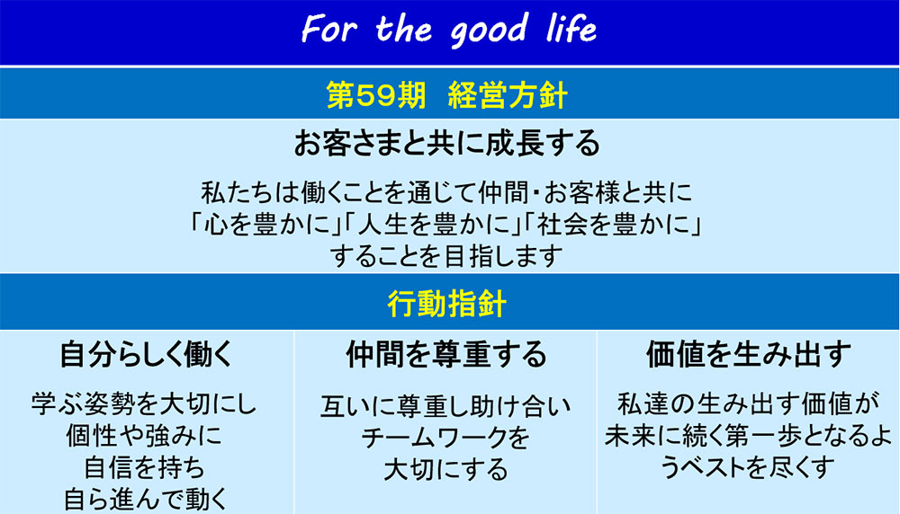 7月から59期がはじまっております。この方針、指針にて1年がんばってまいります。